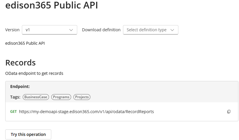To get going, head to the APIs page and select "edison365 Public API" (or pick it below - your choice!)